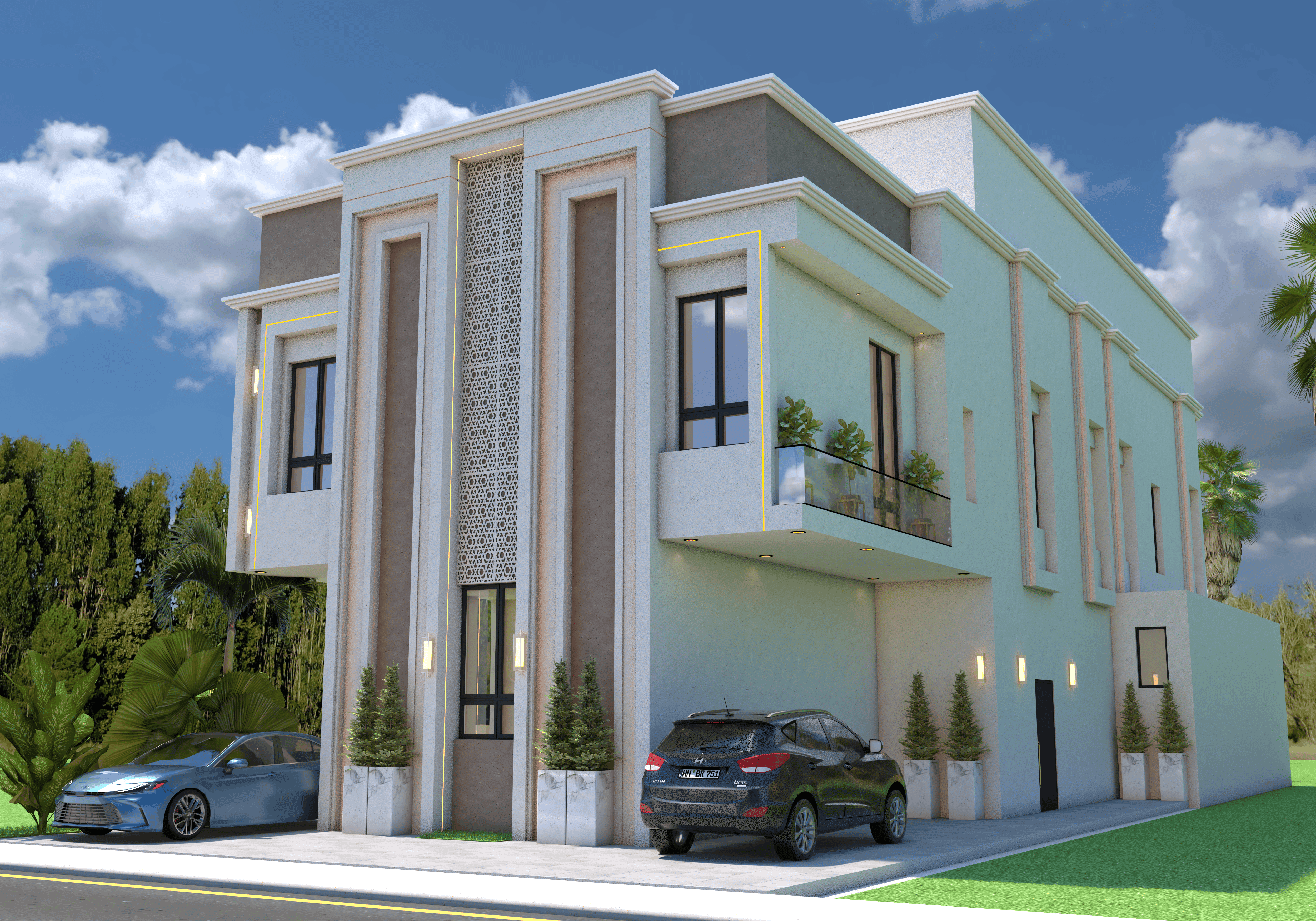 واجهة ستيكو بيضاء بتصميم بسيط